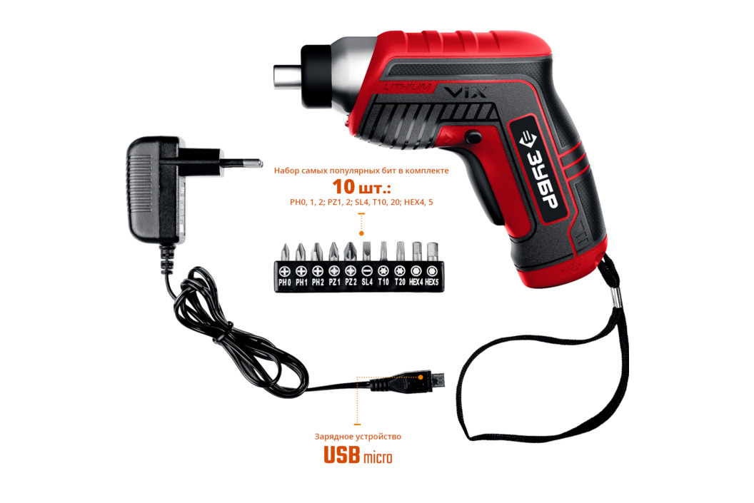 Отвертка аккумуляторная Зубр ViX ЗО-Е-3.6 Ли