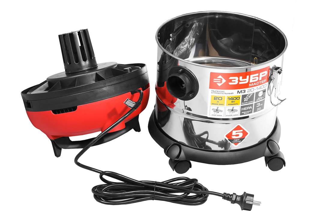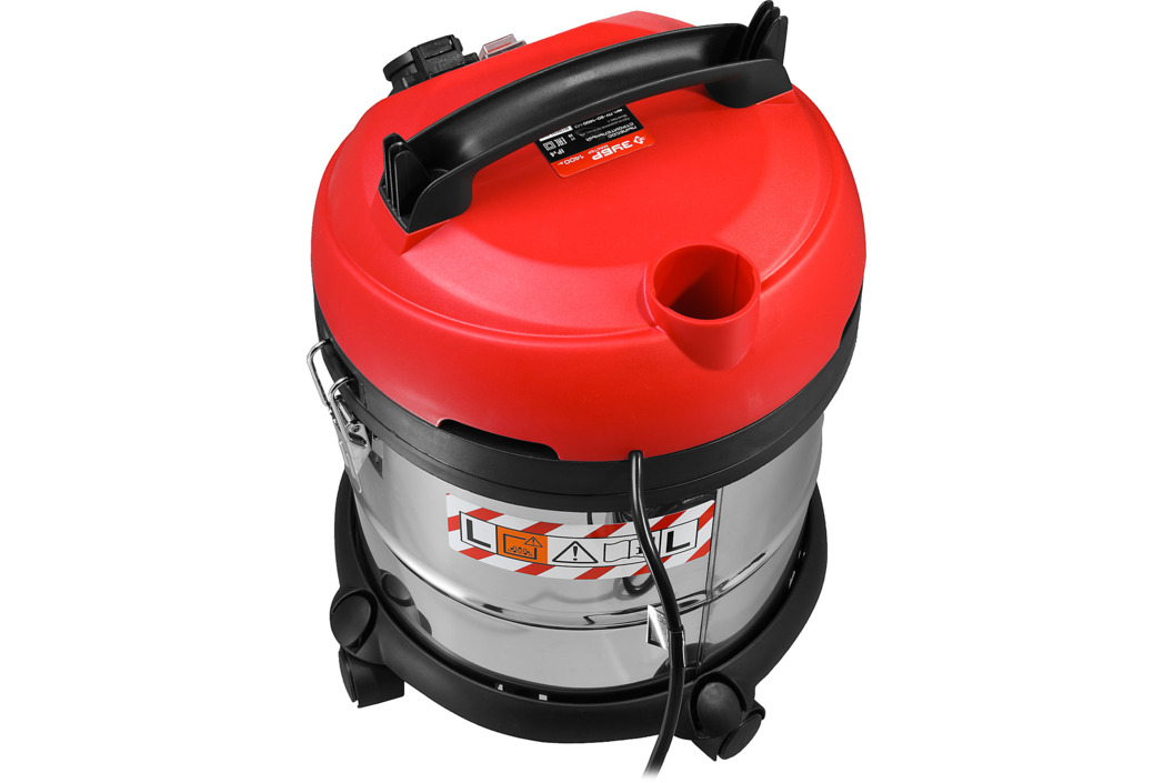 Строительный пылесос ЗУБР предназначен для уборки помещений, а также для принудительного удаления продуктов пиления, строгания, фрезерования и т.п. из рабочей зоны электроинструмента. Он незаменим для поддержания чистоты в гараже, мастерской, удаления мусора во время ремонта в квартире или на даче. Бак из нержавеющей стали объемом 20 л очень долговечен. а синхронное включение с инструментом, подключенным через розетку пылесоса позволит сохранить чистоту на рабочем месте.