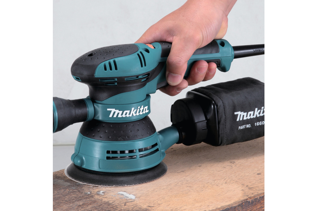 - Стандартная комплектация: эксцентриковая шлифовальная машина Makita BO5041, пылесборник, лист шлифовальной бумаги.