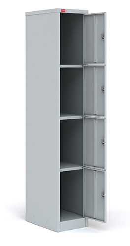Односекционный металлический шкаф для сумок разборный, с четырьмя отделениями. Шкафы ШРМ - 14 используются для хранения сумок, пакетов, а также сменной одежды. -