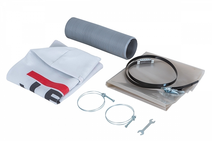 Подключение и использование: Станки подключаются через 100-миллиметровый штуцер и гибкий шланг. Дополнительно можно использовать насадки (арт. 100000414 и арт. 100000413), которые позволяют эффективно убирать крупный мусор, часто забивающий шланг строительного пылесоса.