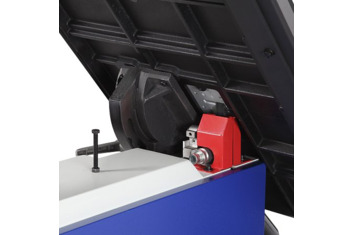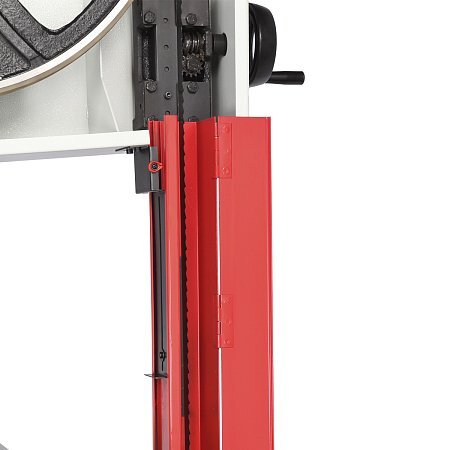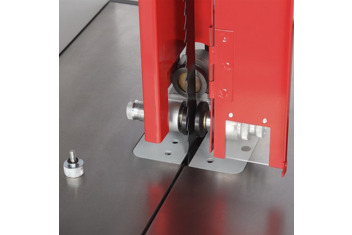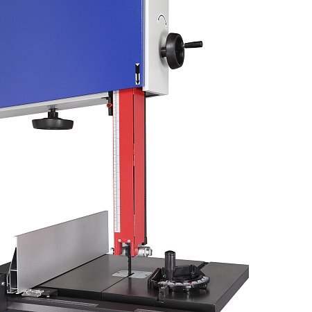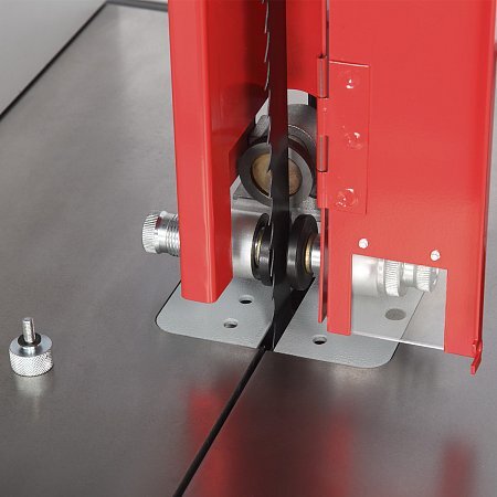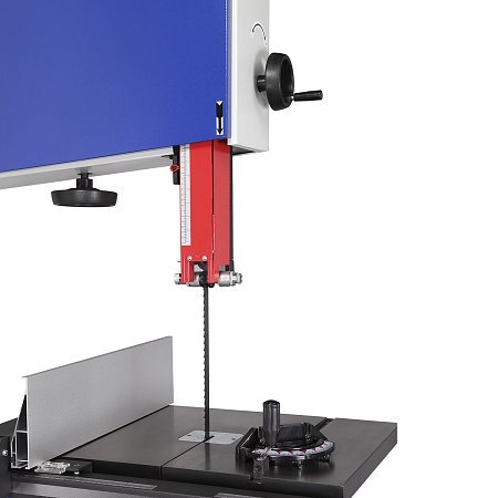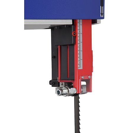 Угловой упор с диапазоном настройки от -60° до +60° предназначен для выполнения точных угловых резов.Качество и безопасность реза обеспечивает продуманная система направляющих пильного полотна. Верхний узел с маховиком быстро регулируется по высоте. Боковые опоры и задняя направляющая точно настраиваются шестигранными ключами для минимального зазора и исключения увода полотна. Натяжение контролируется по индикатору в смотровом окне.
