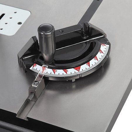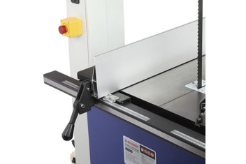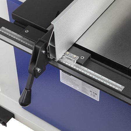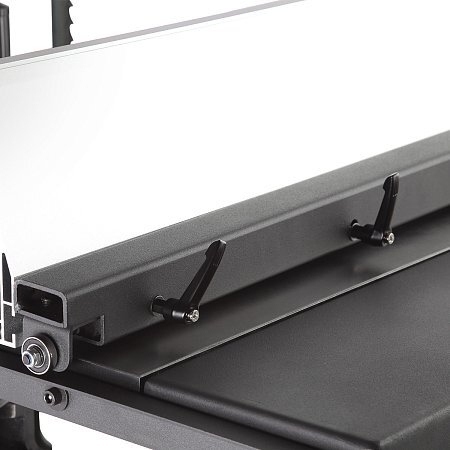 Для точного позиционирования заготовок станок комплектуется литым алюминиевым параллельным упором, который перемещается по передней направляющей и устанавливается как справа, так и слева от пильного полотна.