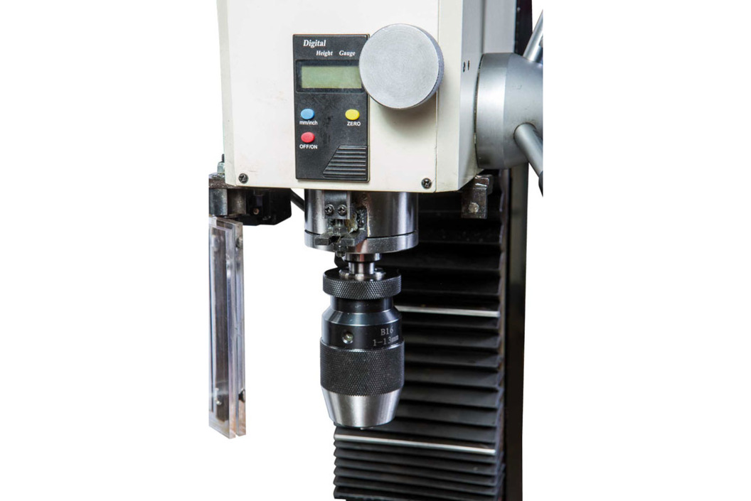 Станок устанавливается на верстак или тумбу и жестко фиксируется на поверхности. За точность вылета пиноли шпинделя отвечает цифровая индикация.
