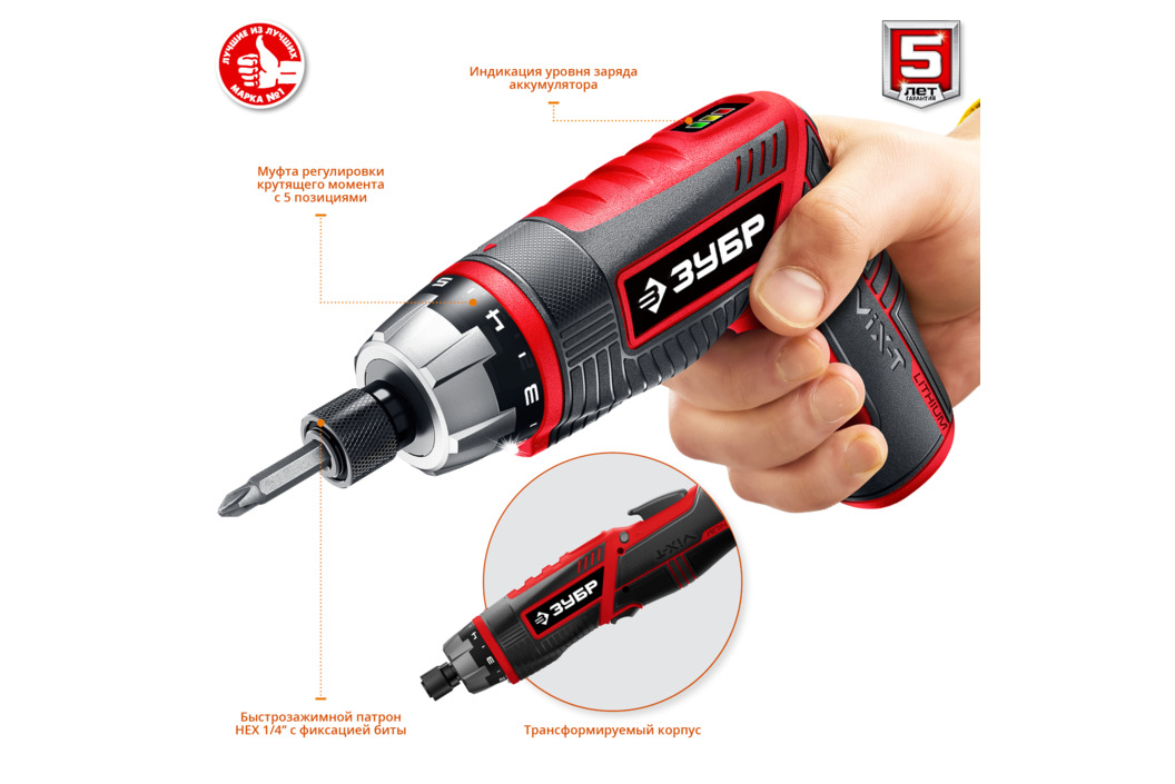 На электроинструменты и бензотехнику «ЗУБР» действует расширенная 5-летняя гарантия. Служба качества контролирует процесс производства на каждом этапе.
