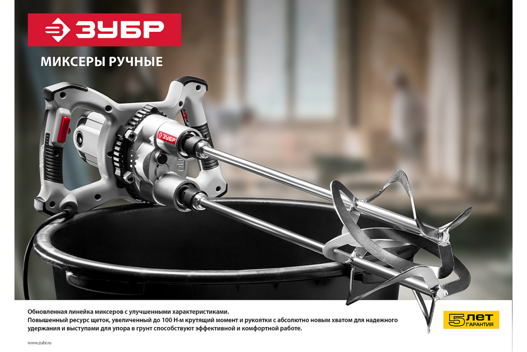 Миксер строительный Зубр МР-1050-1, 2 скорости