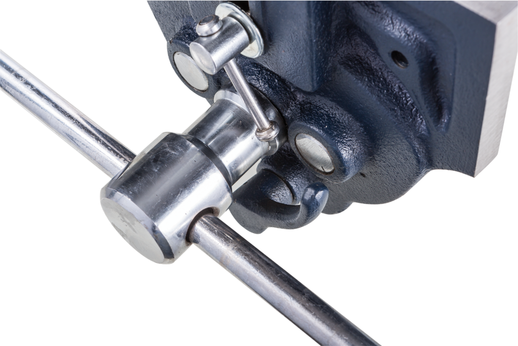 Тиски оборудованы быстроразъёмным механизмом: передняя губка тисков освобождается простым нажатием на защелку, после чего её можно сдвигать без вращения зажимной рукоятки.