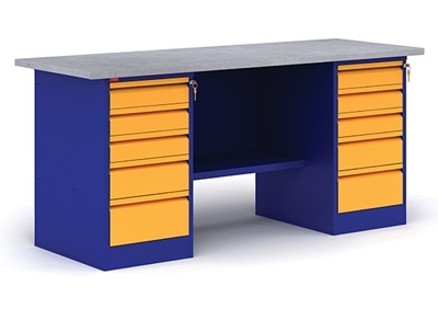 Металлический верстак двухтумбовый с тумбой и драйвером Paks ВП - 6/1.6