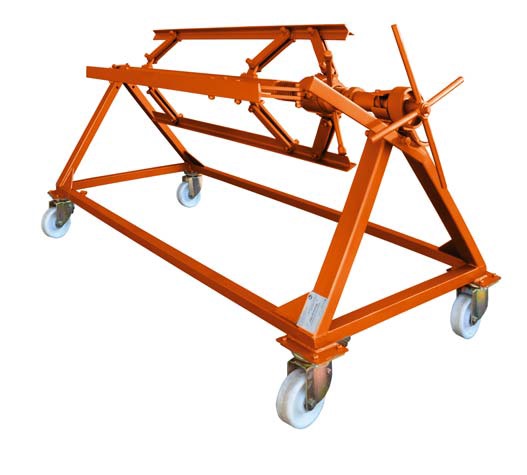 Свободное перемещение разматывателя с рулонами по цеху обеспечивается наличием четырех колес с тормозным устройством.