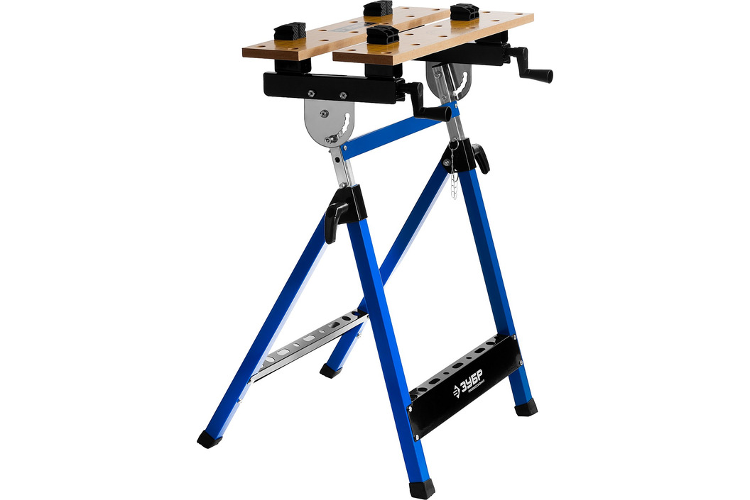 ОписаниеНезаменимый помощник в мастерской, в гараже и в домашних условиях. Предназначен для проведения столярных работ. Благодаря складному каркасу удобен в хранении и транспортировке. Столешница состоит из статической и подвижной части, фиксируемой двумя вращающимися ручками. Для удобства в работе столешница оснащена отверстиями и фиксаторами заготовок любой формы.