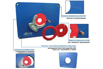 Пластина для крепления фрезера в фрезерный стол из текстолита с тремя кольцами с отверстиями Ø25,4 , Ø30,16 и Ø50,8 мм с ключом для колец