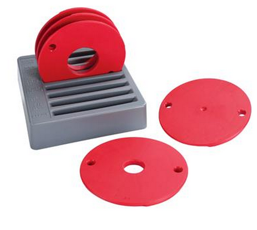 В комплект входят кольца с отверстиями 19 мм, 35 мм, 41 мм, 54 мм (3/4 ", 13/8", 15/8 "и 21/8" ), плюс одно «пустое» кольцо, которое вы можете использовать, чтобы создать свое собственное нестандартного размера кольцо. В комплекте поставляется лоток для хранения, который имеет слоты для хранения всех пяти переходных колец Level-Loc, слоты для трех колец, которые поставляются в комплекте с плитой фрезерного стола Precision Router Table Insert Plate или лифтом Precision Router Table Lift. Каждый слот подписан, что делает хранение еще более организованным.