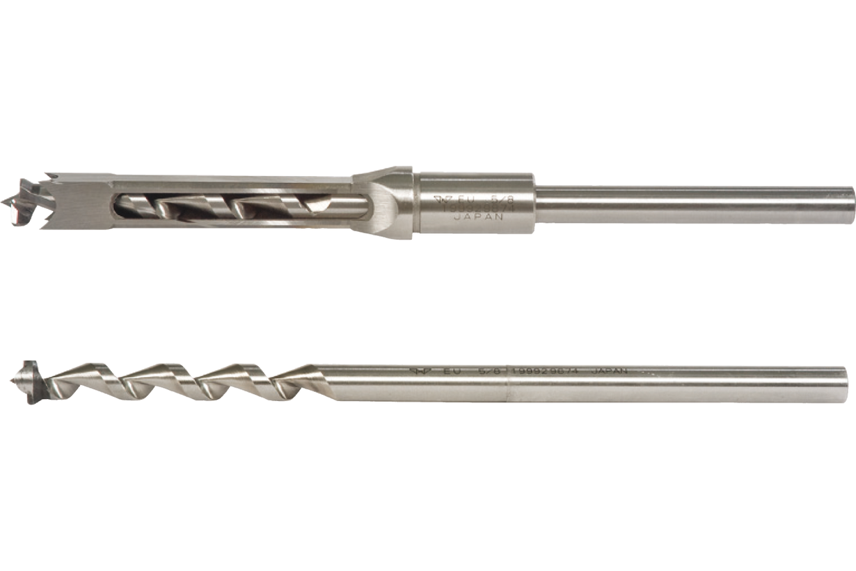 Основная особенность, присущая японским образцам — конструкция сверла с центрирующим острием и с одной режущей кромкой. Такое сверло имеет одну, но широкую и глубокую винтовую канавку для удаления стружки, которая обеспечивает надежный отвод древесных отходов и высокую производительность работы. Этот дизайн создавался с учетом специфики использования долбежных сверл в Японии, где в ходу в основном мягкие породы древесины. Несмотря на кажущееся противоречие, на твердых породах такая конструкция также ведет себя отлично. Немаловажно и то, что заточка сверл с одной режущей кромкой проще.