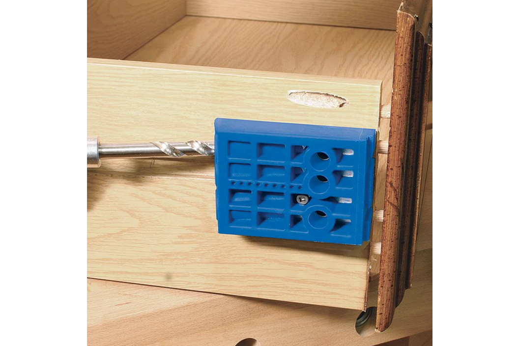 • каждый блок направляющих Kreg® Drill Guide имеет вставку из закаленной стали, которая имеет пожизненную гарантию, которая направляет сверло, и прижата к детали в течение всего движения сверла