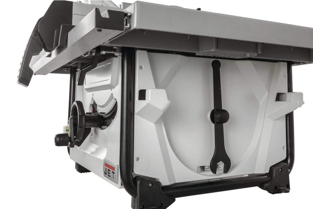 JSTS-10-M компактная настольная циркулярная пила любительского класса. Станок имеет хорошо продуманную конструкцию, позволяющую производить множество настроек для решения самых разных задач. Можно увеличить размер рабочей поверхности, выдвинув секцию расширения (установлена справа от пильного диска), снять, установить или настроить по высоте расклинивающий нож (процедура выполняется сверху стола без вспомогательных инструментов); предусмотрен даже монтаж когтевой защиты против выброса заготовки назад.