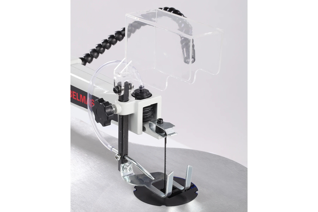 Станок оснащен LED-подсветкой, гибкая конструкция которой позволяет устанавливать световой пучок в нужном оператору положении.В основании станка есть специальные отверстия для крепления к верстаку, что придает устойчивость и дополнительную безопасность.