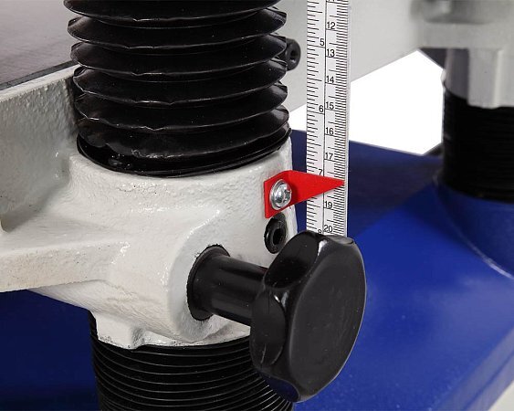 Регулировка глубины резания происходит путем поднятия и опускания стола при помощи маховика. Один его оборот перемещает стол на 1,5 мм. Максимальная высота рейсмусования - 203 мм, что позволяет обрабатывать заготовки, поставленные на ребро. Максимальная ширина обрабатываемой заготовки 508 мм.
