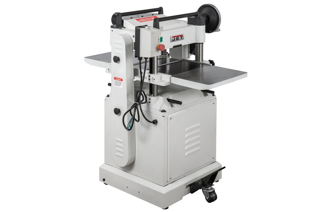 JWP-15K — рейсмусовый станок с прочной и массивной конструкцией, предназначенный для профессиональной и любительской эксплуатации. Рабочий стол, его удлинения, основание и строгальный узел сделаны из чугуна. Регулировка просвета происходит при подъеме и опускании стола, в нижнем положении расстояние до ножей превышает 200 мм, что позволяет пропускать крупные брусья или доски, поставленные на ребро.