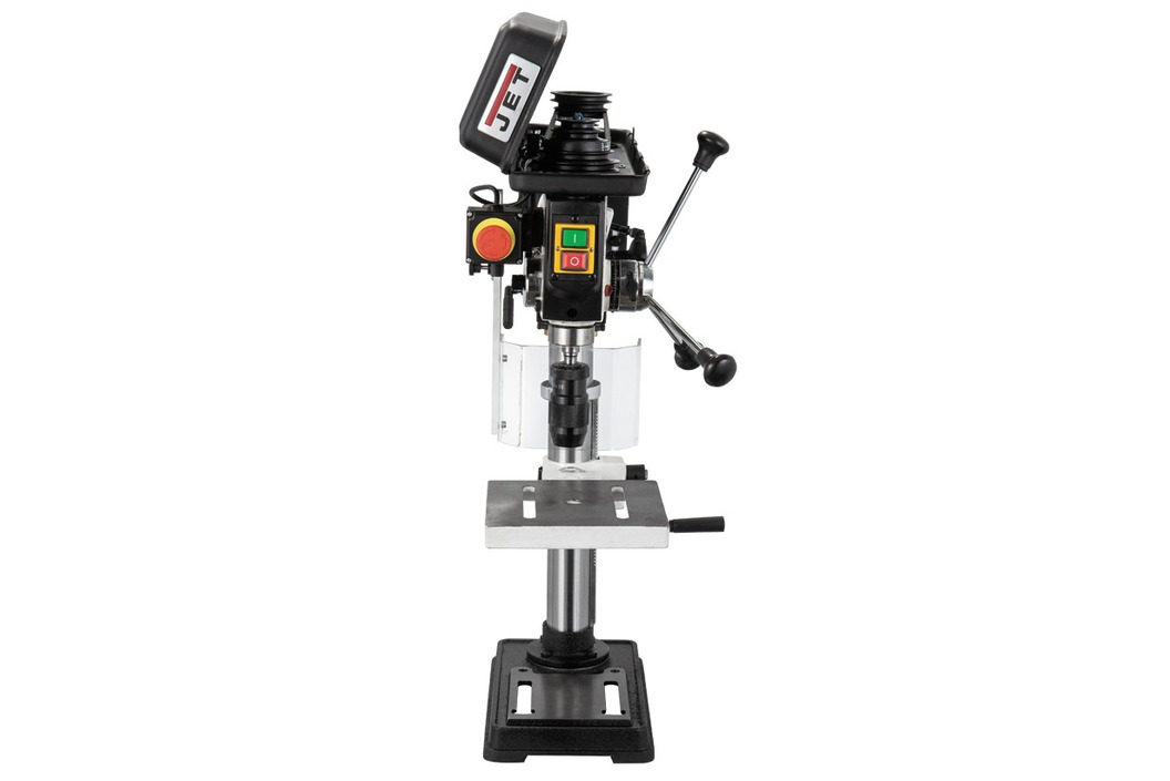 Настольный радиально-сверлильный станок Jet JDR-34 для работы с заготовками из металла, древесины, пластика и других материалов. Имеет расширенные возможности по настройке и регулировке, что выгодно отличает его от моделей стандартной конструкции. Сверлильная часть установлена на горизонтальной цилиндрической направляющей и может перемещаться относительно колонны. Это позволяет регулировать величину вылета: увеличивать, если того требуют размеры заготовки, или уменьшать, что способствует повышению жёсткости. Кроме того, можно сверлить ряд отверстий без переустановки детали. Помимо линейного перемещения возможен и наклон сверлильной части: до 45° в одну сторону и до 90° в другую. При этом все другие регулировки, присущие стандартным станкам, есть и здесь: рабочий стол можно поднять, опустить, наклонить или демонтировать.