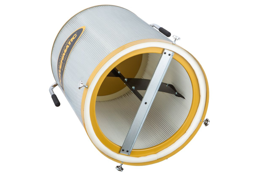 Powermatic PM1300CK-M производительная аспирационная установка, штатно оборудованная 2-микронным фильтром со встроенной системой самоочистки (стряхивания мусора в мешок при повороте рукоятки). Важная особенность модели – полностью металлический воздуховод: из стали сделана «улитка», крыльчатка, рукав до фильтра, сам корпус к которому присоединяются фильтр и пылесборник, а также внутренняя часть корпуса (конический сепаратор) системы TurboCone. Последняя способствует более полному отделению мусора под действием центробежных сил и повышает плотность его укладки в мешке за счет физического разделения зон складирования и турбулентности.