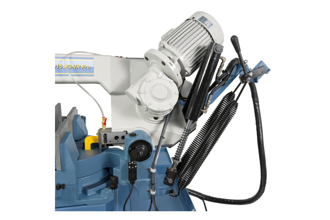 MBS 315 DG-VR PRO пила оснащена тисками, которые перемещаются вместе с пильной рамой. Бесступенчатая скорость резки, возможность перехода от автоматического к ручному режиму, а также отображение натяжения ремня с помощью манометра — это дополнительные функции, которые делают эту модель очень привлекательной для каждого пользователя.