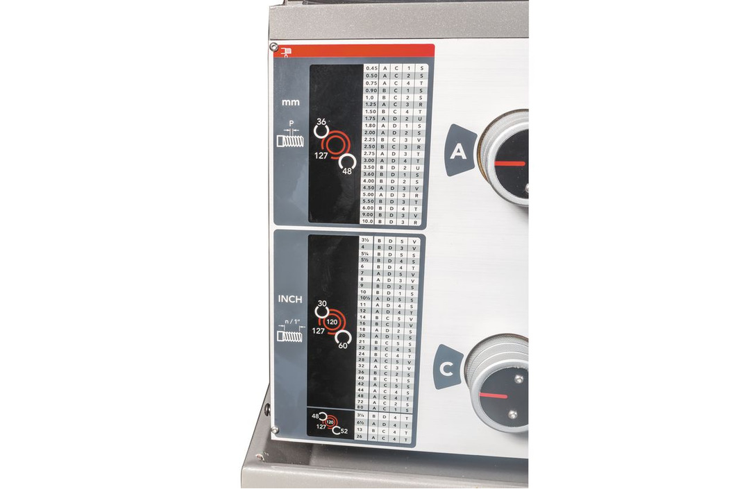 GHB-1340A DRO выполнен по двухвинтовой схеме. Для нарезания резьбы используется ходовой винт, для автоматического точения - ходовой вал. На станке возможна регулировка зазоров направляющих при помощи клиновых планок, конструкция задней бабки позволяет обтачивать конические заготовки. Для облегчения механического переключения режимов на GHB-1340A DRO применяется толчковый (импульсный) режим пуска двигателя.