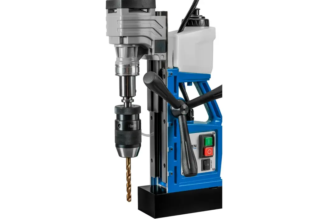 Магнитный станок DM-36K выполняет сверление корончатыми сверлами до Ø 36 мм и спиральными сверлами до Ø 13 мм.