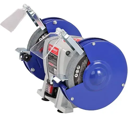 Компактная и легкая модель с традиционной компоновкой. По центру расположен асинхронный двигатель мощностью 300 Вт. По обе стороны от двигателя установлены заточные диски диаметром 150 мм и шириной 16 мм с различной зернистостью. Диски изготовлены из нормального электрокорунда (15А). Такой абразив используют для снятия заусенцев, фасок, обдирки на небольших заготовках, восстановления эксплуатационных свойств ручного инструмента, такого как ножи, топоры, секаторы и т. п.