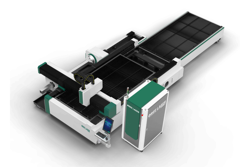 Комбинированный лазерный станок OREE LASER тяжелой серии «ET» с литой станиной, автоматической сменой столов и труборезным модулем. OR-ET 3015 станок тяжелого класса для раскроя листового металла.