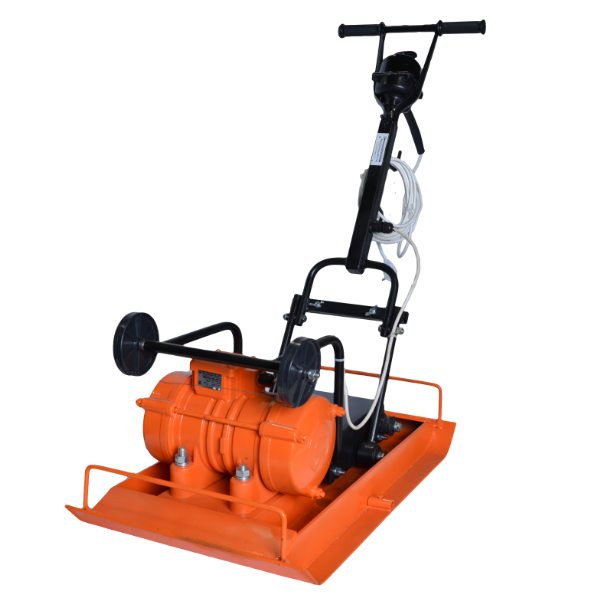 - Виброуплотнитель ВУ-11-75 представляет собой конструкцию из плиты, являющейся его рабочей частью, в центре которой установлен электромеханический вибратор общего назначения с круговыми колебаниями ИВ-98Е, который представляет собой трехфазный асинхронный электродвигатель с короткозамкнутым ротором с установленными на концах вала ротора дебалансами. Дебалансы, вращаясь с валом ротора, создают вынуждающую силу. К плите через специальные виброизоляторы прикреплена рама с рукояткой управления. На рукоятке установлен выключатель электропитания вибратора. Уплотнение происходит за счет вертикальной составляющей вынуждающей силы, возникающей в вибраторе. Поступательное движение виброуплотнителя происходит за счет горизонтальной составляющей вынуждающей силы.